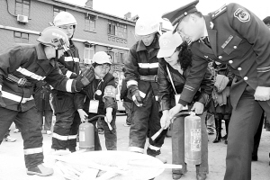 消防官兵爲尖山街居民講解滅火器使用常識武凱攝