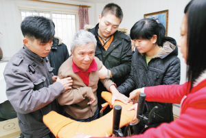 天津市南開區華苑街有一支“大學生助老志願服務隊”,該服務隊以天津青年職業學院等高校的大學生志願者爲主體,以街道、社區老年服務活動中心爲基地,爲生活自理能力差的老人從日常生活等方面開展助老扶困活動。本報記者姚文生攝