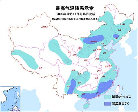 受北方擴散南下冷空氣影響,氣溫的走低將持續到周六,我國東部不少地區都可能遭遇入冬以來最冷的一周。預計,與15日最高氣溫相比,17日內蒙古中東部、東北大部、山東、浙江、福建、廣東、廣西、貴州等地的最高氣溫都將有所下降,其中內蒙古中部、福建、廣東廣西的部分地區降溫將超過5℃。