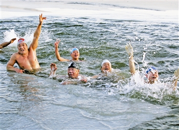 | 今晨,本市受強冷空氣影響,最低氣溫驟然下降至-11.7℃。圖為不少冬泳愛好者一大早來到水上公園東湖進行晨練,挑戰嚴寒。本報記者 王 津攝 |