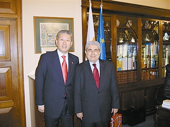 塞浦路斯是位於地中海最東面的一個島國,自古以來就是亞、非、歐三大洲海上交通要衝,常住人口80%是希臘族,傳說中是女神維納斯的故鄉。說起塞浦路斯,趙亞力滿含深情:『這裡一年有300多天日照時間,陽光充沛,氣候宜人,游客中50%是英國人,他們中很多是賣掉房子的英國老人到這裡養老。現在有2000多名華人生活在這裡,市場上到處能看到中國制造的產品。我去這幾年,中塞雙邊關系發展非常快,兩國高層互訪日益頻繁,政治文化及經貿關系也有長足發展,現在我國向塞出口達11億美元,這對於一個只有100萬人口的小國來說是個很可觀的數字。中塞兩國關系非常友好,去年塞浦路斯總統來京參加奧運會開幕式時,胡錦濤主席對他說:「塞浦路斯是中國全天候的伙伴和朋友」,給予中塞關系很高的評價。我在這裡每天工作很忙,但非常愉快,而且交了不少朋友,我和塞浦路斯總統、議長等各層領導關系都很好,在關鍵時候得到他們很有力的幫助和支持。』