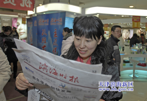 今天上午,《濱海時報》社的編輯記者們把帶著墨香的第一份《濱海時報》試刊送到了讀者手中,為天津濱海新區讀者獻上了一份獨特的新年禮物。