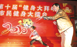 “健身大擂臺”包括12分鐘跑、仰臥起坐、啞鈴側平舉、俯臥撐、水中屏氣、引體向上、雙槓雙臂屈伸、定點投籃球、仰臥起坐、跳繩、立定跳遠、坐位體前屈、顛球、乒乓球對攻等項目。運動員向原項目紀錄挑戰,成績超過原紀錄即“攻擂”成功,併成爲下屆擂臺賽的“擂主”。活動場面火爆,羣衆參與積極,氣氛熱烈。副市長張俊芳宣佈天津市第十屆“健身大拜年”活動開始,並同市總工會、團市委、市婦聯、市體育局等部門領導同志觀看了“健身大擂臺”比賽。 (孫震蔡志文攝)