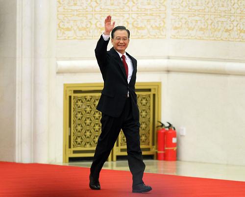 3月14日,國務院總理溫家寶在北京人民大會堂與中外記者見面,並回答記者提問。 這是溫家寶總理步入會場。