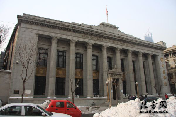 橫濱正金銀行創立於1880年,總行設於日本橫濱。天津分行開設於1899年,以經營外匯及存、貸款為主要業務,曾在中國發行鈔票。通過貸款、透支,支持日商大量向中國華北輸出商品,獲得廉價原料,牟取暴利。抗戰勝利後,由中國銀行接收。該建築位於和平區解放北路80號,天津市文化保護單位,特殊保護等級歷史風貌建築。建於1926年,由英商愛迪克生和達拉斯(同和)工程公司設計。二層混合結構樓房,建築外檐為石材牆面,造型穩重華麗,其正立面的8根科林斯巨柱構成的開敞柱廊強調了對稱構圖,是典型的古典主義風格。