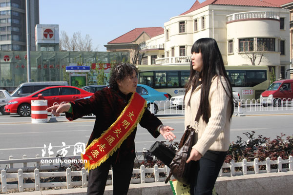 一個勸阻、一個微笑……他們就是這樣一羣爲了“文明交通,平安和平”忙碌的志願者。他們手握小紅旗,和交警一起對不按規定車道行使、闖紅燈、不走斑馬線的違法行爲進行糾正、引導和勸阻。“我們在這裏舉舉小旗,衝紅燈的行人的確少了很多,很配合我們的工作。這纔是我們可愛的和平人!”這是在南京路與曲阜道交口的志願者王霞在90分鐘志願服務後吐露的心聲。儘管臉頰被風吹得通紅,儘管雙腿在不停地打顫……但是他們沒有一個人退縮,依然堅守在崗位上,依然保持着微笑和火一般的熱情。