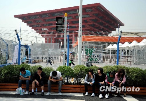 | 2010年4月30日,來自全國各地的游客聚集在世博園中國館前,靜候世博園的正式開園。2010年5月1日,上海2010年世博會將正式開園,來自全世界的游客將入園參觀。 |