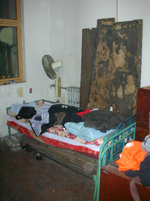 在一些三室一廳的住所裡,房東在每個房間放上四到六個高低鋪,每個房間只有一個大櫃子,所有住宿人的行李全放在一起。部分『研漂』每月花300元,僅僅能在這裡租一個2米長一米寬的床位。他們在這裡的活動空間,也只有2平方米。