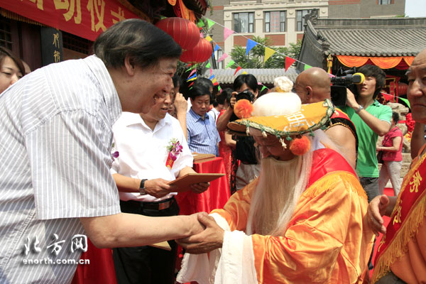 天津北方網訊:在我國第五個文化遺產日即將到來之際,『民間保護天津皇會基金』啟動儀式6月8日上午在皇會發祥地——天津天後宮舉行。這是國內首次出現的由民間發起、為一項非物質文化遺產設立的專門基金。國務院參事、中國文聯副主席、基金管委會名譽主任馮驥纔出席啟動儀式。