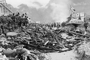 | 12日,救援部隊調來重型設備清理舟曲河道。 |