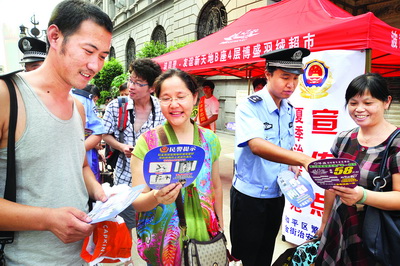 日前,公安和平分局金街派出所針對夏季治安特點,印制了大量帶有『民警提示』內容的涼扇,在夏季治安宣傳點向過往游客發放,提醒大家增強防盜意識,受到群眾的歡迎。