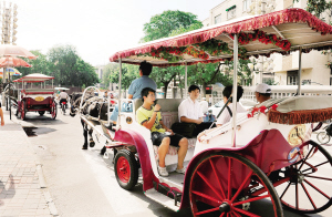 圖為外地游客乘馬車游覽五大道。(記者 王欣鵬 攝 ) 濱海新區網9月1日訊 隨著『金九銀十』旅游高峰的臨近,天津市各大景區景點的准備接待工作相繼就緒。近日,記者在五大道以及古文化街看到,景區新增加游覽項目,特別是五大道在旅游旺季到來之際為游客准備了近百輛嶄新的自行車、雙人自行車,以便游客騎行觀光。據五大道客服中心負責人介紹,最近幾周每天的客流量都在千人以上。古文化街在增加綠植的同時對整體攤位進行了提昇,更加的美觀。昨天,記者在古文化街看到來自北京、河北、山東以及南方省市的旅游團隊來津旅游觀光,津城旅游旺季已經到來。
