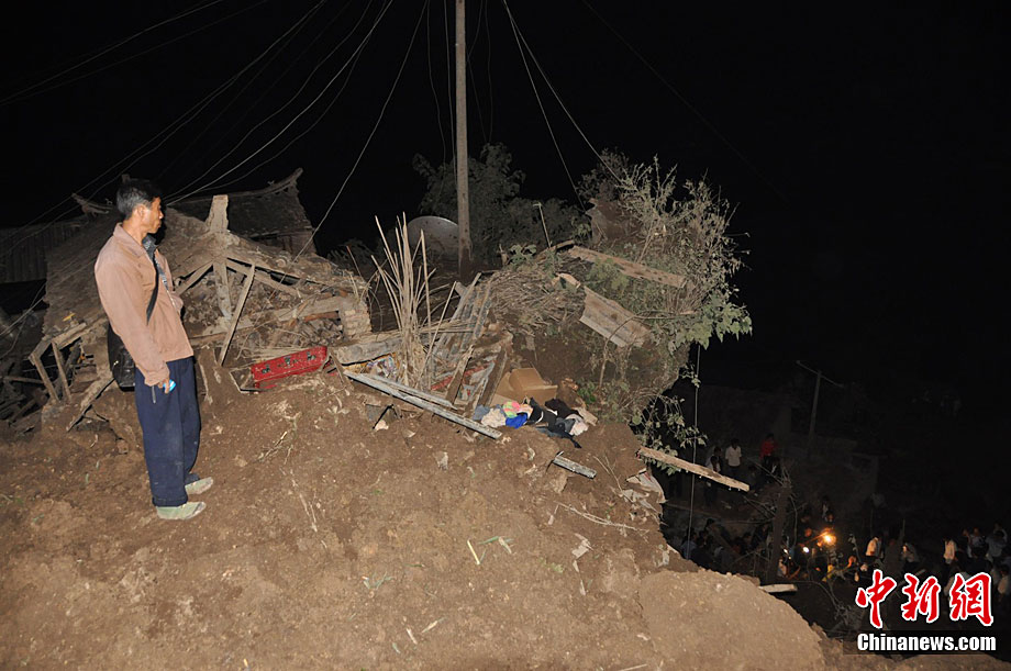 | 9月2日,雲南保山當地民眾面對因山體滑坡而被毀的家園陷入深思。雲南省保山市政府當日下午向媒體通報,截止到2日14時30分,該市瓦馬鄉特大地質災害已造成8人死亡,8人受傷,40人失蹤,災害原因已初步查明。9月1日22時22分,保山市隆陽區瓦馬鄉河東村大石房村民小組發生山體滑坡,造成該村民小組21戶89人受災。截至2日14時30分,災害已造成8人死亡,40人失蹤,其中6名輕傷員得到及時有效救治,2名重傷員已轉入市醫院住院治療,傷情穩定,無生命危險。 |