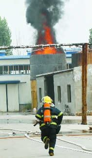 11時04分,一輛消防車呼嘯著開進工廠,7位救援人員跳下車,迅速展開撲救。