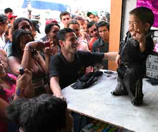 ●6日,在巴基斯坦特達,6歲的小男孩優素福從災民臨時安置點被轉送到中國國際救援隊的流動醫院,本已休息的救援隊隊員們對優素福進行了緊急救治。經過半個小時搶救,孩子鼻腔中一個1釐米大小的豆子被成功取出。