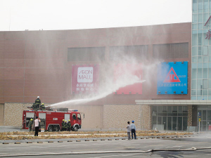 『這次演習,支隊共投入了高噴車、水罐車、雲梯車、照明車、排煙車等共9部,投入消防員65人。』開發區消防支隊隊長賈建民說,『永旺夢樂城是大型購物中心,也是人員密集場所,消防安全特別重要。通過演習,可以提昇大家的安全意識和自救水平,同時也能讓消防官兵們進一步熟悉環境,一旦發生險情可以立即救援。』