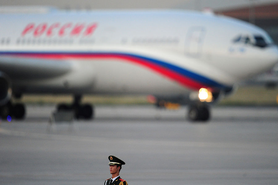 | 9月26日,俄羅斯總統梅德韋傑夫的專機抵達北京首都國際機場。 |