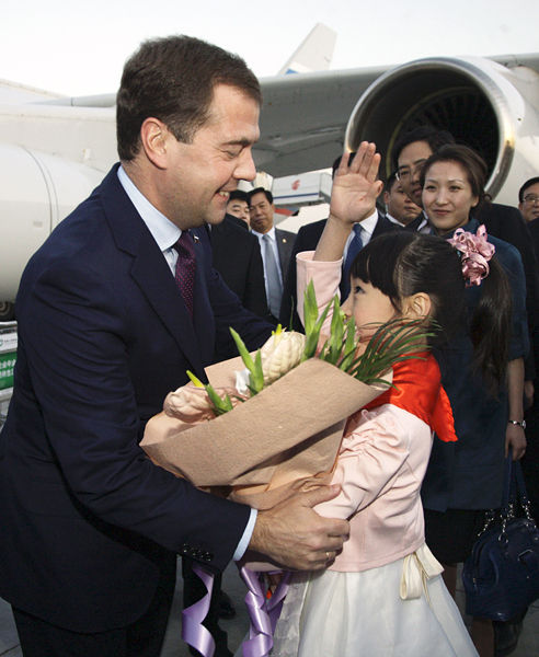 | 9月26日,應國家主席胡錦濤邀請,俄羅斯聯邦總統梅德韋傑夫抵達大連,開始對中國進行為期三天的國事訪問。 |