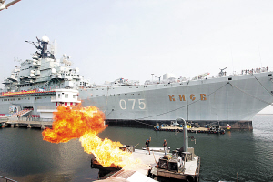 天津北方網訊:波濤洶湧,炮聲震天,艦只穿梭,硝煙彌漫……基輔號航母推出的《反擊風暴》率先重磅出擊,昨日進行試演。這部比好萊塢大片更震撼的海戰實景電影,讓人第一次這麼近距離看到爆破、槍戰、煙火、聲光、機動設備、滑水、高空特技等多種尖端特效的火爆。作為國內最大的特技表演,今日就將正式『開戰』!