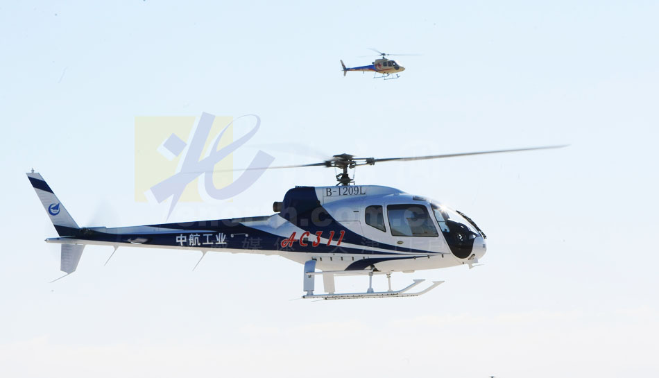 天津北方網訊:國內生產的首架AC311機型於8日在天津濱海新區亮相併完成首飛,首飛儀式上,天津濱海造另一架AC301型號直升機進行伴飛,兩架濱海造“姊妹”版直升機能夠同時“上天”,標誌着天津濱海新區直升機產業順利起航。(記者馬宬)
