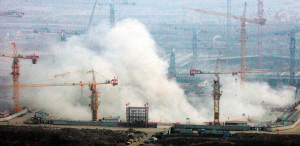 天津三建二分公司的負責人告訴記者,爆破拆除的是位於基坑底部的環梁支橕,采用的是世界上最流行的微秒差控制爆破技術。在規定的爆破范圍內,在混凝土的梁上每隔300毫米至1200毫米設置一個火藥孔,孔徑達到42毫米,整個環梁上共安放了5000個炮眼。整個支橕爆破網絡的起爆點由雙發雷管引爆,兩根導爆管順延至地面後用高壓脈衝爆器引爆,爆破時間約為6秒,共用炸藥2噸。