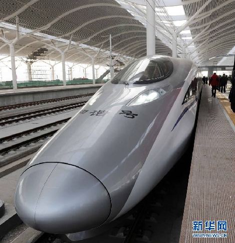| 12月3日,將進行綜合試驗的『和諧號』CRH380A新一代高速動車組停在京滬高鐵徐州東站站臺。 |