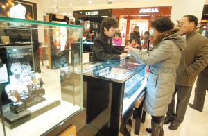另外,商場的飾品也是市民購買量較多的商品。據張衛東介紹,商場開門銷售的第一單,就是一枚價值3.5萬元的鑽戒。