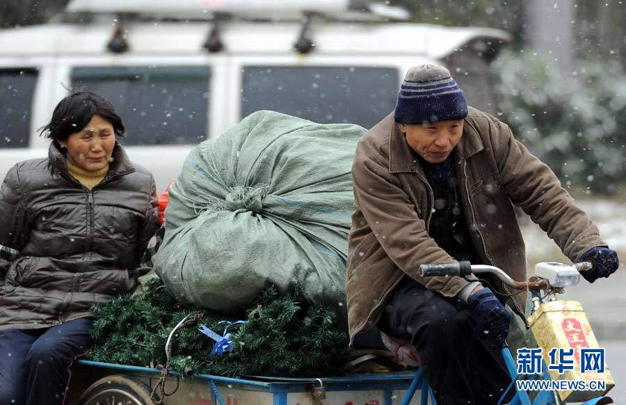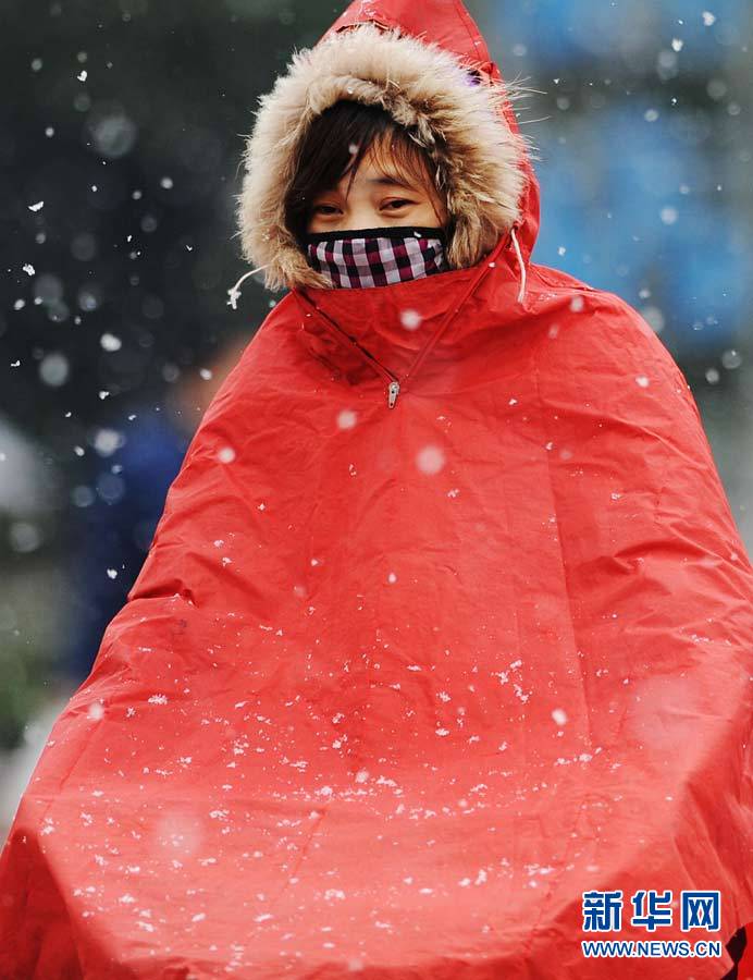 | 12月15日,人們冒雪出行。當日上午11時,安徽省氣象局發布暴雪藍色預警信號。該預警信號表明安徽省部分地區12小時內降雪量將達4毫米以上,或者已達4毫米以上且降雪持續,可能對交通或者農牧業有影響,並可能伴有道路結冰。 |