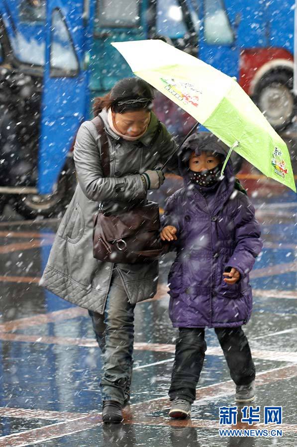 | 12月15日,在浙江衢州街頭,市民冒雪趕路。當日,受強冷空氣影響,浙江迎來今冬首場降雪。浙江省氣象臺上午9時45分發布暴雪黃色預警信號。預計未來12小時湖州、嘉興、杭州、衢州、金華、紹興、寧波東部地區將出現中到大雪,局部暴雪,積雪深度可達4-6厘米,局部10厘米以上。 |