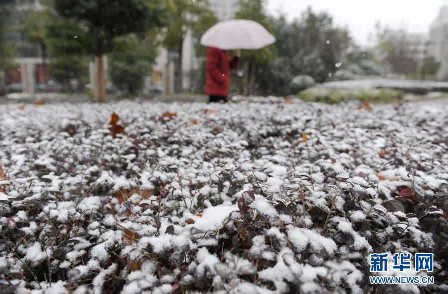 | 12月15日,一位行人從積雪的綠化帶旁走過。當日上午11時,安徽省氣象局發布暴雪藍色預警信號。該預警信號表明安徽省部分地區12小時內降雪量將達4毫米以上,或者已達4毫米以上且降雪持續,可能對交通或者農牧業有影響,並可能伴有道路結冰。 |