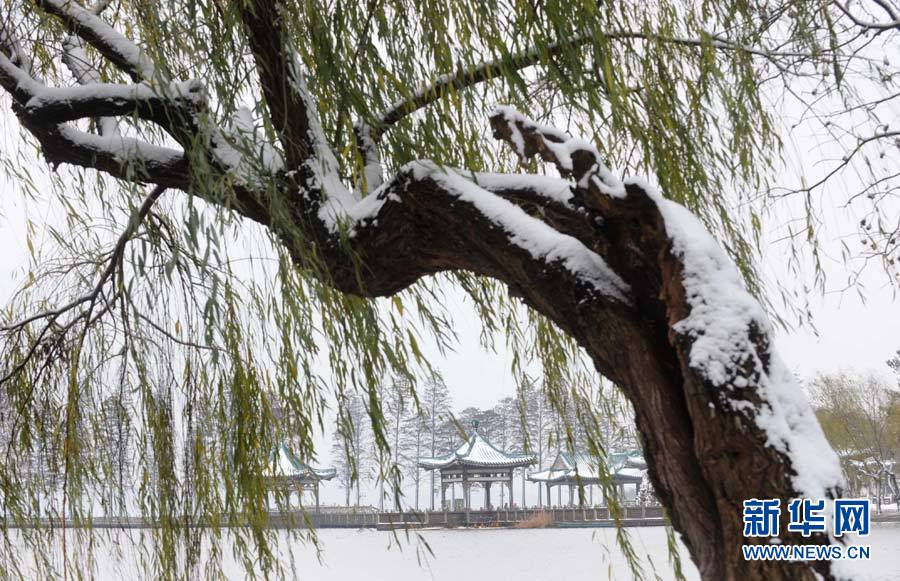 | 12月15日,武漢東湖公園的樹上已有不少積雪。當日,武漢市降下今年入冬的第一場雪。 |