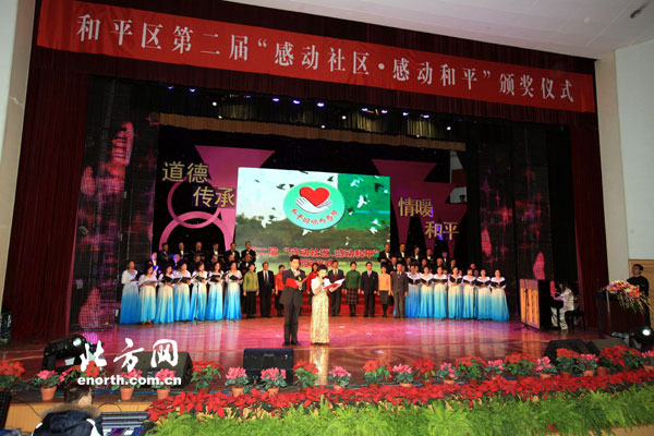 天津北方網訊:12月15日,第二南開中學大禮堂內鮮花簇擁掌聲雷動,愛的暖流伴隨著感動的淚水溫暖著初冬的津城。和平區第二屆『感動社區·感動和平』人物評選活動頒獎典禮在這裡隆重舉行,又有10個市民和集體成為了道德傳承的先進典型。
