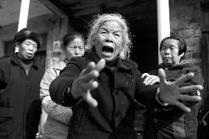 | 29日,衡南縣東塘村,一位在27日事故中失去孫女的老人無法自控,失聲痛哭。 |