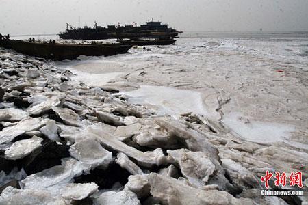 | 12月29日,受強冷空氣影響,山東濰坊萊州灣海域出現結冰現象,昔日的海面變成了白色的冰雪世界。據了解,萊州灣一帶海水較淺,海水鹽度低,在氣溫突然降低的情況下極易結冰。 |