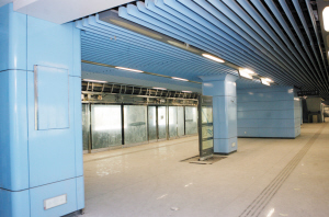 記者昨日在地鐵9號線東興路站施工現場看到,地面上的出入口以大塊玻璃的設計打造出通透的外觀效果。順着樓梯走到位於地下的東興路車站,記者發現車站整體以淺灰色爲主色調,包括牆面、地面等,而吊頂和柱子等部位則採用了淡藍色。據瞭解,車站裝修材料以不燃材料爲主,地面選用天然石材,牆面、吊頂則選用鍍鋅鋼板、鋁合金等材料進行裝飾。