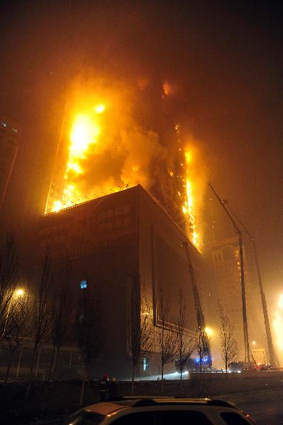 記者凌晨1點多趕到現場時南面152米高的B座已經完全燃燒,數百名群眾在現場圍觀,200多輛消防車和警車集結在周邊待命。但由於現場的雲梯車高壓水槍只能噴射到10層左右,以上的火勢無法控制只能看著燒。在2點30分左右,B座公寓樓基本已經完全燒光,只剩下主體框架,火勢逐漸蔓延到A座和C座寫字樓。目前人員傷亡和具體財產損失不明。