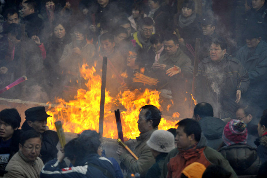 | 2月3日,大年初一,皇家寺院雍和宮內祈福敬香的市民人潮湧動。每逢新春,特別是在大年初一、十五上香的日子,雍和宮的香火之盛、人潮之洶湧總是令新來乍到的人瞠目結舌、令京城其它寺院望塵莫及。 |