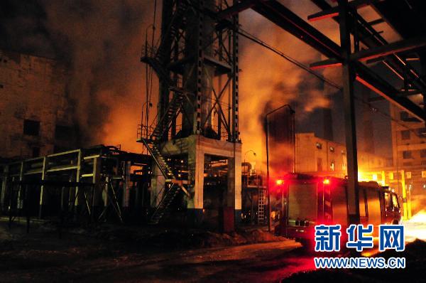 | 2月10日晚拍攝的爆炸現場。當日17時左右,位於黑龍江省齊齊哈爾市的黑化股份有限公司氮肥生產車間發生爆炸事故,事故已造成2人受傷,暫未發現人員死亡,傷者正在醫院救治。 |