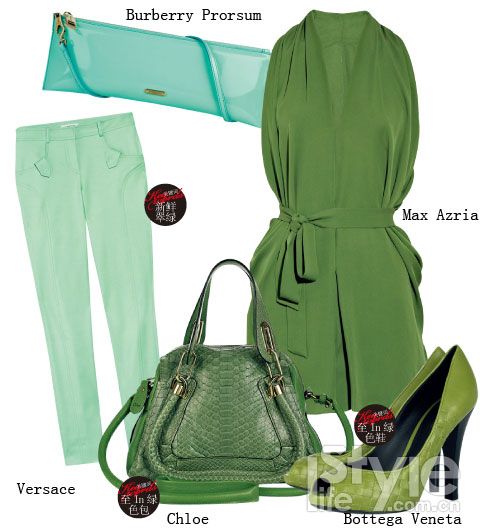 富有極強生命力感的翠綠,以及相鄰的藍色系也是這個春夏不可忽略的潮流重點。尤其是色調明亮的綠色,更是決不能錯過的新季必備。除了出現在服裝上以外,帶有綠色系的手包、鞋等配飾更是新一季的絕對摩登主角。