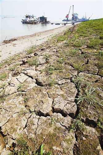 這是4月25日在長江江西九江段拍攝的裸露的江灘。今年4月以來,受降雨偏少和上游來水少影響,長江江西九江段水位持續下降。九江水文站監測數據顯示,截至25日14時,長江九江段水位已降至9.94米,與去年同期相比下降6.38米,這也是該江段1960年以來同期水位的次低值,僅次於2007年的9.91米。據瞭解,目前長江九江段水位還在持續下降中。新華社發胡國林攝