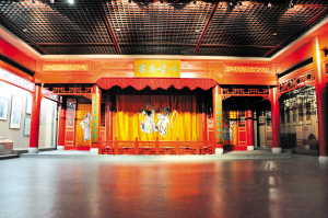 博物館爲充分展現年畫藝術,充分採取了造景的方式,還原了戲臺、古民居、年畫作坊等文化場景。由於楊柳青年畫經常描繪戲曲舞臺的場面,此次天津“泥人張”根據楊柳青年畫《四郎探母》中《見娘》這折戲的畫面真實還原了戲劇景觀,塑造了7個人物,每個泥人高約90釐米,造型逼真。楊四郎百感交集、老太君慈祥中不失威嚴、八姐九妹身段婀娜,每個人物體態各異,但都栩栩如生、呼之欲出。戲臺景觀下方則設置了《太君點兵》、《盜令箭》和《南讓北和》等相關年畫。