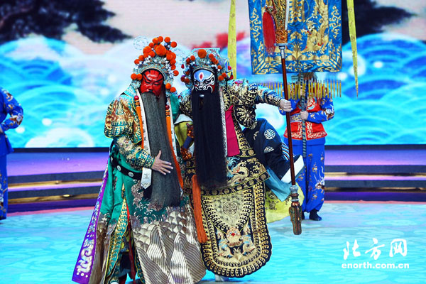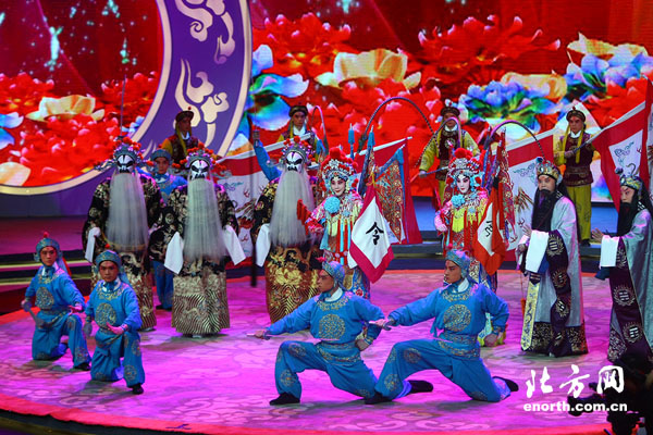 天津北方網訊:由中央電視臺、天津市中華民族文化促進會共同主辦的《功業千秋——慶祝中國京劇音配像播出15周年》大型電視晚會9月29日晚在北京舉行。中國京劇音配像工程的倡導者、策劃者和總指揮李瑞環,全國政協副主席、中國文聯主席孫家正,國家廣電總局局長蔡赴朝,市人大常委會主任肖懷遠,全國人大民族委員會副主任委員劉勝玉,文化部副部長王文章,市委常委、市委宣傳部部長成其聖出席觀看演出,並向有關戲曲院校、院團等單位頒贈了中國京劇音配像精粹光盤。中央及本市有關方面負責同志參加活動。
