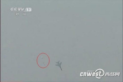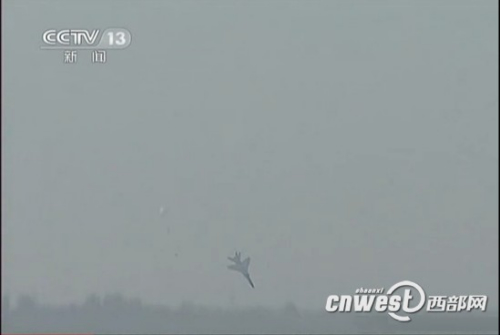 據西部網記者現場報道,當日上午10時40分左右,一架國產飛豹戰機在從東向西表演低空飛行過程中突然失控,飛行員彈跳出艙,隨後飛機墜毀。