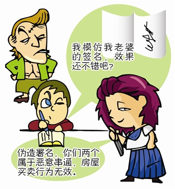 面對這種複雜局面,辦案經驗豐富的張小娜堅信男方所提交證據中必然存在重大瑕疵,男方與購房人作爲共同被告出庭,爲了證明賣房款在女方手中,購房人當庭出具了兩套房款付清現金的收據,收款人籤的是夫妻兩人的名字。這樣的證據正是張小娜等待的。張小娜立即向法庭指出,購房人承認房款交給了男方而收據也是男方交給他的,這首先證明購房人明知兩套房屋屬於夫妻財產,而夫妻兩人的簽名明顯是一個人的筆跡,由此證明二被告之間存在惡意串通的故意。爲了固定證據,張小娜當庭申請對收據上女方的署名進行司法筆跡鑑定。當司法鑑定結果證明房款收據署名不是女方筆跡時,法庭基本上採信了原告律師的意見,作出了一審判決,認定兩套房屋雖然辦理了變更登記手續,但因近四百萬元的房款交付行爲,並沒有經過房屋管理部門資金監管,二被告不能證明房款已經交付,庭審中二被告之間存在惡意串通,不屬於法律規定的善意第三人,房屋買賣行爲應當無效。製圖齊珏