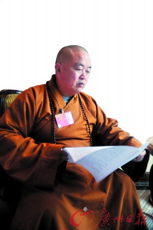 “如果說摘宗教活動場所的牌子,是我們的事,與我們有關;但摘景區的牌子,是政府的事,與我們關系不大。關於錢的問題,我覺得錢用好了,錢再多都不怕,用不好,錢再少都會出問題。”昨天,身著僧衣、帶著念珠的全國人大代表、少林寺方丈釋永信在駐地接受了本報記者專訪。對於幾年來的全國代表生涯,釋永信表示,自己這些年來把佛教界的心聲帶到兩會上,在信徒和全國人大之間做了橋梁和紐帶的作用,作為代表,自己還是很稱職的。他還表示,宗教機構辦養老院有天然優勢,少林今後將考慮建養老院。