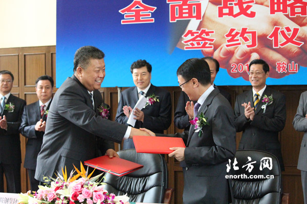 天津北方網訊:9月4日中午,渤海銀行與鞍鋼集團在遼寧省鞍山市簽署全面戰略合作框架協議,協議的簽署標誌着雙方建立起了長期、穩定、多方位的合作關係,爲今後雙方拓展合作領域的深度和廣度,以及實現互利雙贏奠定了堅實基礎。