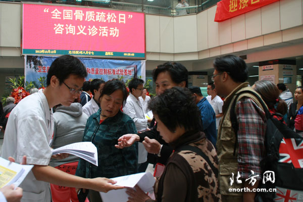 天津北方網訊:在世界骨與關節炎日來臨之際,天津中醫藥大學第一附屬醫院於2012年10月12日舉辦了“骨質疏鬆症診斷和質量控制標準試驗基地”落戶該院揭牌儀式及大型義診諮詢服務活動。