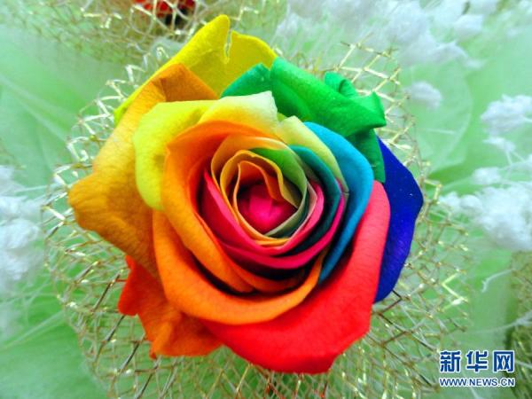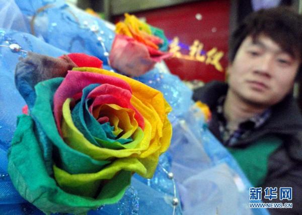 “七彩玫瑰”爲情人節添浪漫 每朵售價100元
