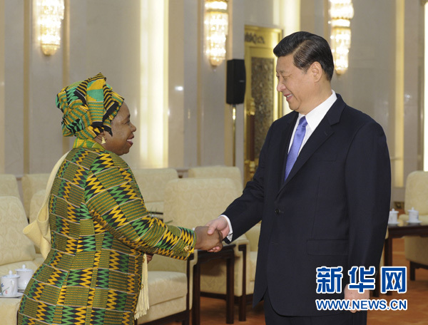 | 2013年2月17日,習近平在北京人民大會堂會見非洲聯盟委員會主席祖馬。 |