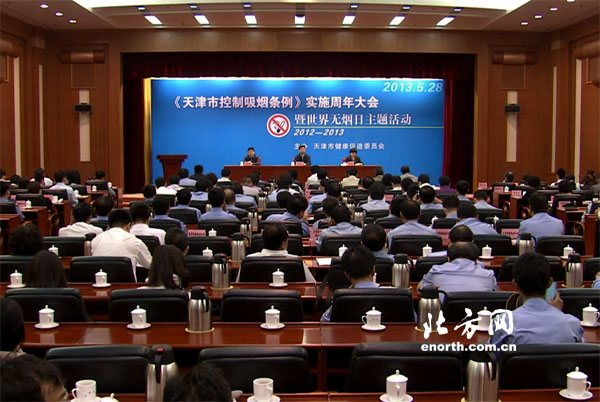 天津北方網訊:28日上午,本市舉行《天津市控制吸菸條例》實施週年大會暨世界無煙日主題活動,總結交流本市一年來的控煙工作,向公衆宣傳菸草煙霧危害,加大《條例》實施力度,進一步推動控煙監督執法。會上,天津違法吸菸行爲“隨手拍”活動正式啓動。市人大常委會副主任苟利軍出席大會,併爲本市體操運動員董震、電視臺主持人馬豔和歌舞劇院歌唱演員張鶴頒發了“天津市控煙形象大使”聘書。副市長曹小紅出席大會並講話。